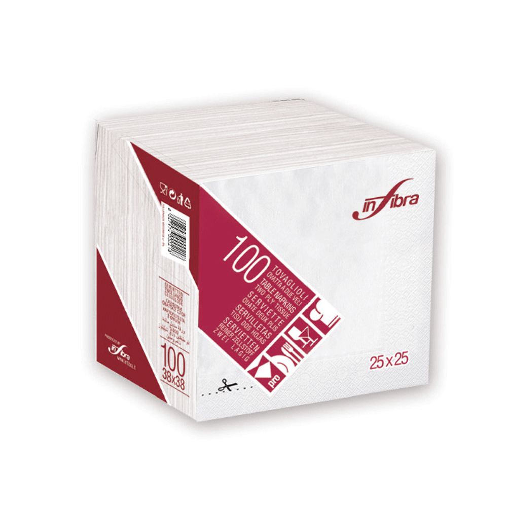 Tovagliolo madre terra 2 veli 100% fibre riciclate, ecologico effetto punta a punta. Idoneità alimentare, certificato EcoLabel e dermatologicamente testato. Smaltibile tra i rifiuti organici.