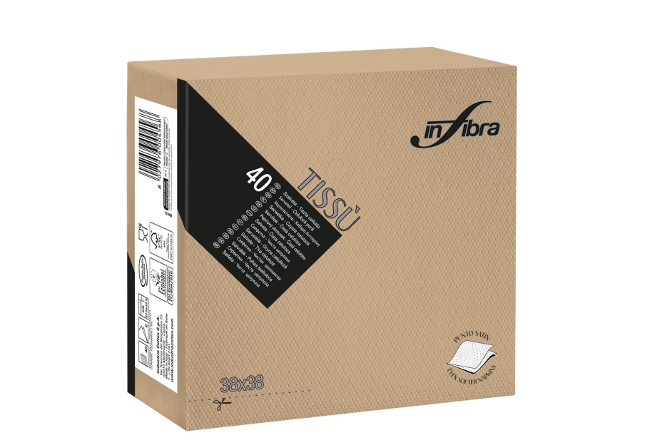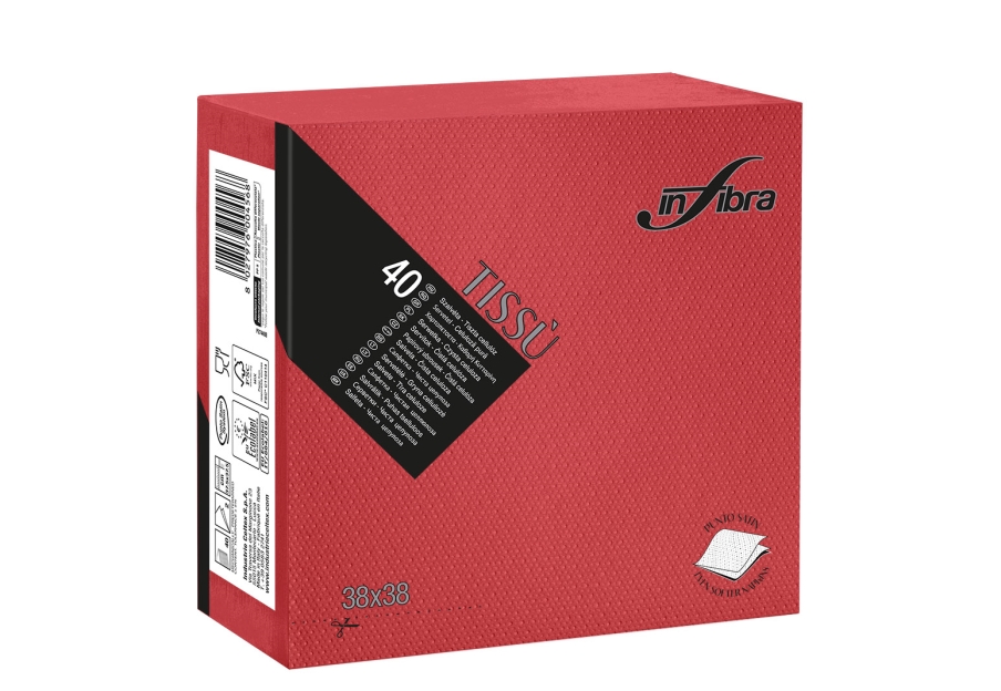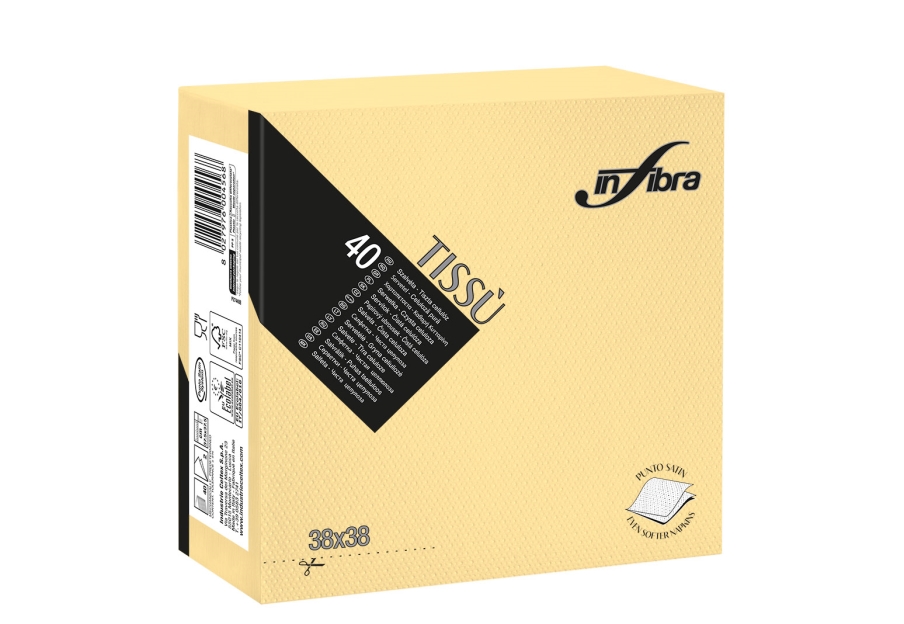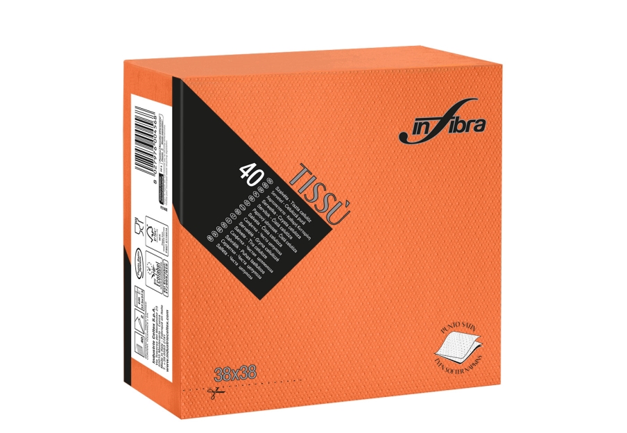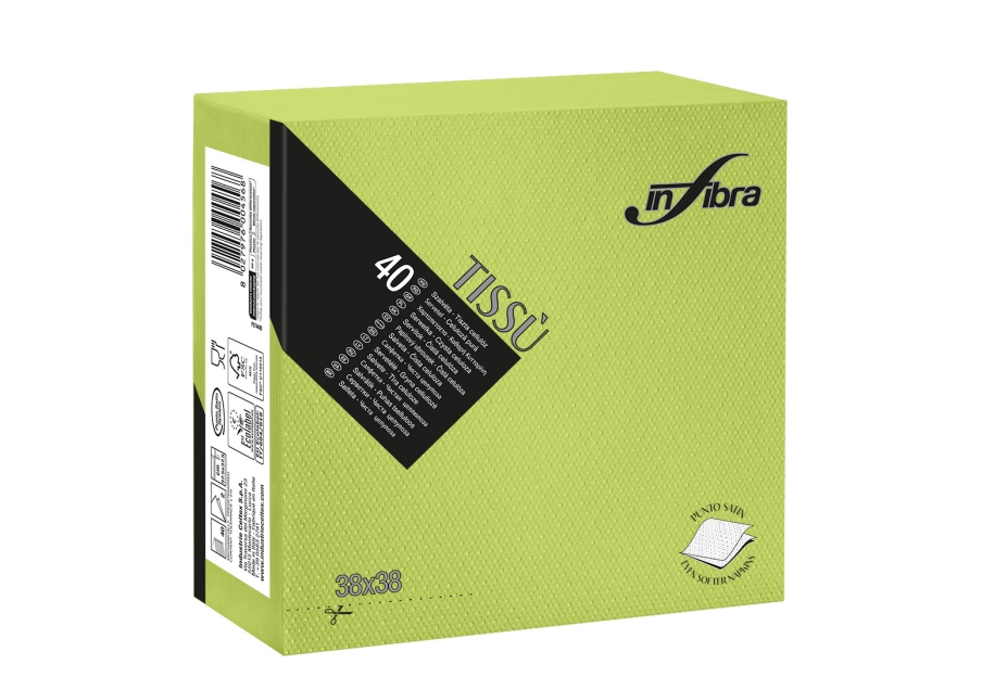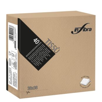 Tovagliolo monouso Tissù 2 veli punta punta, certificato EcoLabel e idoneità alimentare. Il particolare materiale simile al tessuto dona a questo articolo eleganza, orbidezza ed unicità alla tavola.