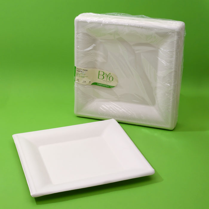 PIATTO PIANO IN POLPA QUADRATO Cm.26×26 x 50 PZ. ELEGANCE – ART.510007