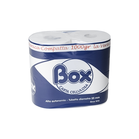CARTA IGIENICA BOX KG.1 COMPATTA, 4 ROTOLI, PURA CELLULOSA, 2 VELI, 2400 STRAPPI